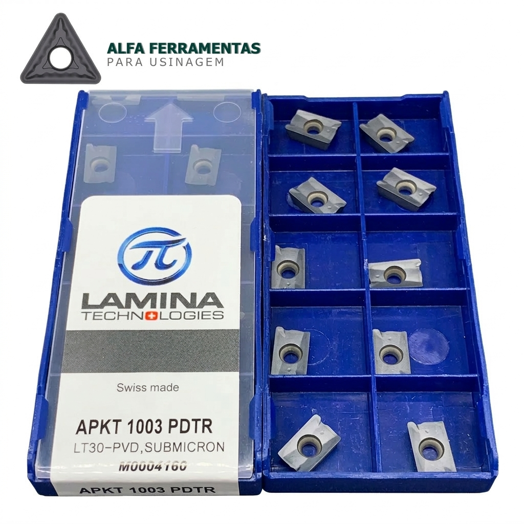 Garanta máxima versatilidade com a Pastilha APLX 1003 Lamina Technologies. Classe LT 30 multi-material para Aço, Inox e Ferro Fundido. Confira na Alfa Ferramentas para Usinagem.